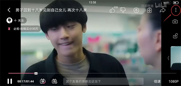 3、进入哔哩哔哩并播放视频,点击页面右上角的更多选项;