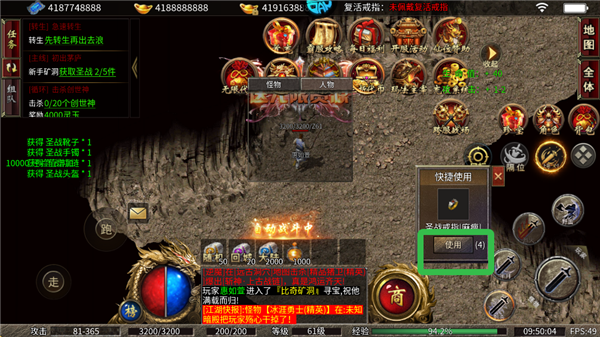2、打怪掉落的装备,点击立即穿戴。