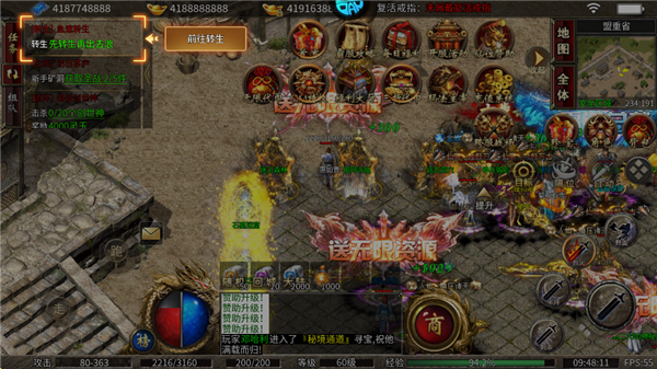猛将争霸传奇手游还有各种多人副本,如大乱斗、血战魔龙等,玩家将在这里与全网玩家一起同场竞技,争夺丰厚奖励。并且,游戏开局就送无限灵符、无限元宝,还有自动回收、范围拾取等辅助功能,让玩家更快上手游戏!