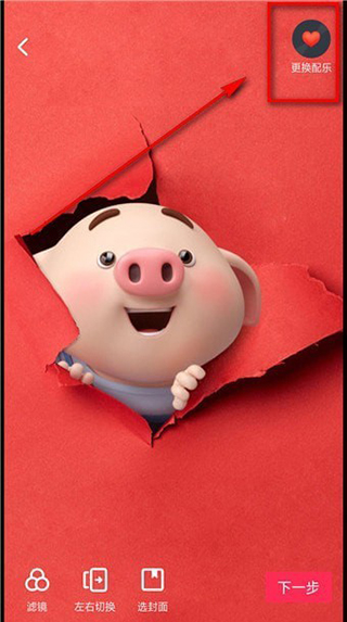 6、我们可以看到右上方就有一个更好配乐的图标,点击【更换配乐】