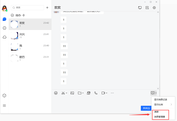 3、清屏是将所有聊天记录删除,若玩家需要删除某一条记录可以或者点击清理管理器,然后在消息管理器界面中选中你要删除的记录并点击右上角删除按键