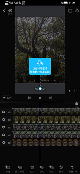 4、在编辑界面里,有qr码、图片/视频、文字、钢笔、模型、画笔、素材广场,我们点击“图片/视频”来添加图片或者视频,选择好了,点击导入就行。