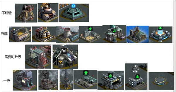 -资源型建筑,主要包括:金属库,石油库,铀库,发电站,建议金属库与石油库只要能升级就往上生,铀库与发电站需要时再升级。前期建两座金属库,石油库与发电站就足够了。冶炼厂,油井不建议升级,更不建议造!
