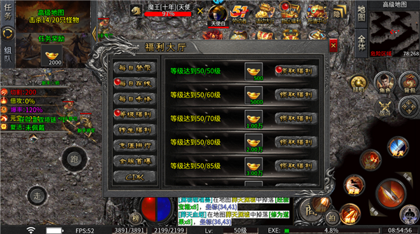 3、内置福利活动,达到在线时长、等级条件即可领取奖励。