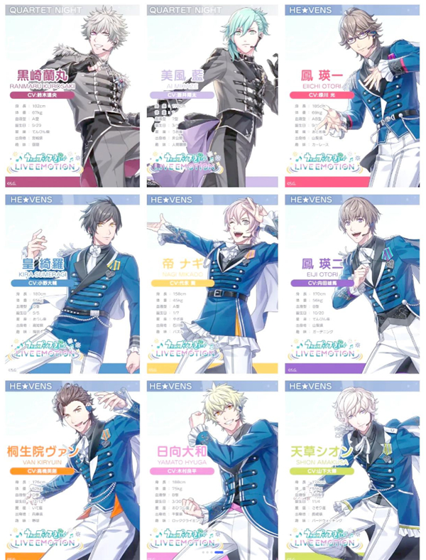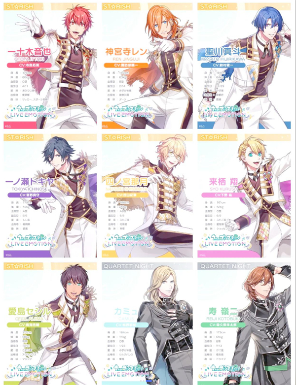 歌之王子殿下LIVE EMOTION是一款女性向恋爱模拟和音乐节奏类游戏,同时也是《歌王子》系列手游新作,本作登场了ST☆RISH、QUARTET NIGHT、HE★VENS 共3个团体18名偶像。