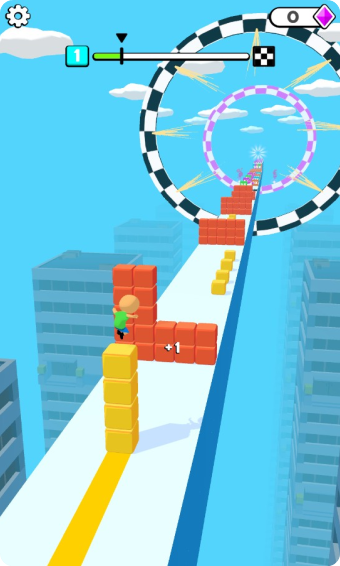 1、一边前行一边收集需要的方块,它可以在遇到障碍的时候帮你抵抗伤害;
