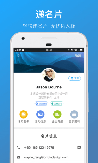 -扫描保存的所有联系人,登录账号可实时同步到云端,安全备份永不丢失,换手机掉手机不担心,人脉丢不了。