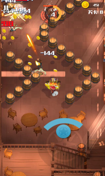 1、清除垂直屏幕上的舞台!西部是充满子弹雨和大量陷阱的危险场所。请小心,并展示自己的最佳举动,以自己的节奏通过舞台!