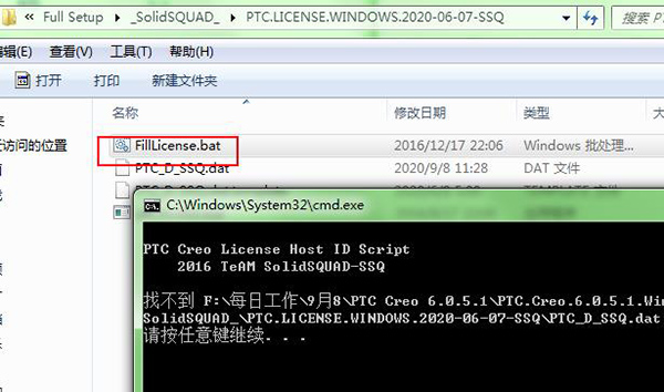 1、右键以管理员身份运行“PTC.LICENSE.WINDOWS.2020-06-07-SSQ”文件夹中的“FillLicense.bat”文件;