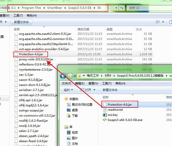 2、拷贝Protection-4.6.jar到soapui安装的lib目录下替换原来的文件