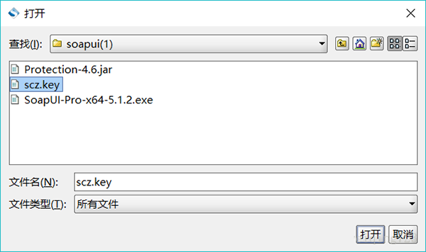 3、运行程序bin\soapui-pro.bat,导入scz.key即可