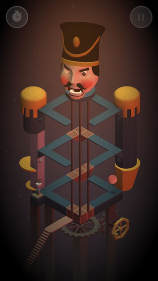 造梦机器人英文名Dream Machine,可意译为如梦似幻般的机器,很好的诠释了一个脱离现实物理规律,在现实和错觉之间游离,在错综复杂的机关构建中探索终点的小机器人的自我救赎。在此主角是一枚可怜的发条机器人,他因为工作时短路而被扔进了废品堆,清醒过来的机器人要凭借自己的智慧破解重重机关,逃出阴冷黑暗的工厂。虽然其中可能有纪念碑谷的影子,但是不得不说,就关卡的丰富性和难度上而言,该游戏比之有过之二无不及。