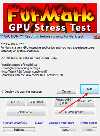 烤机前注意事项:因为FurMark在测试OpenGL 2.0的性能,因此显卡要求NVIDIA GeForce 5以上和AMD/ATI Radeon 9600或S3 Graphics Chrome 400 series以上。