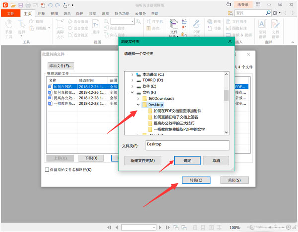 7、然后点击【转换】,弹出对话框,选择转换后的PDF文档保存路径,点击确定,软件即可开始转换;