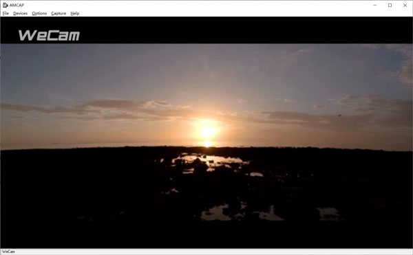 1、在安装后系统里面会多出一个名为“WeCam”的虚拟摄像头,它可以在所有使用摄像头的软件中使用,比如在 AMCap 中显示: