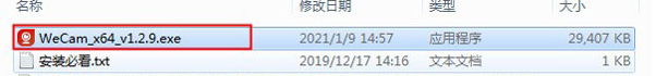 1、在本站下载解压后,双击”WeCam_x64_v1.2.9.exe”开始安装