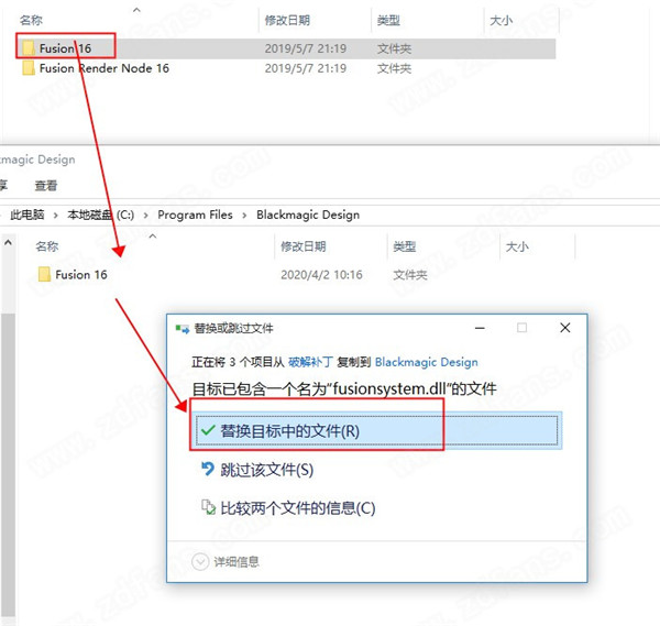 7、将对应的Fusion 16破解文件夹中的文件复制到安装目录中,点击替换目标中的文件;