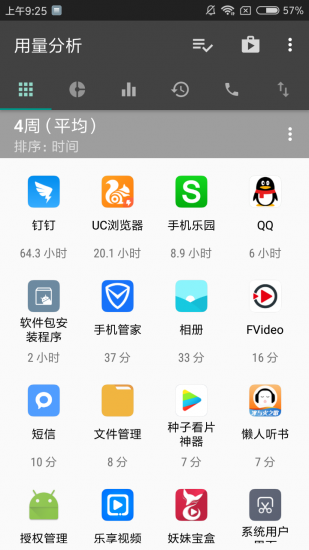 用量分析是一个APP用时管理工具,分析APP的时间开销。你知道你在一个APP上花了多少时间吗?它会帮助你找出自己的使用模式,以便节省时间。