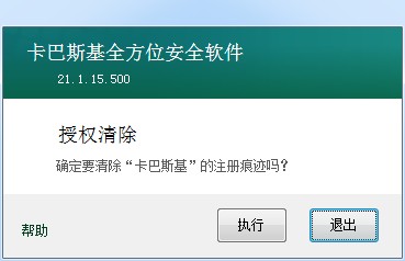 7、以管理员身份运行注册痕迹清除工具,系统会检测出你正在使用的卡巴斯基版本。点击执行