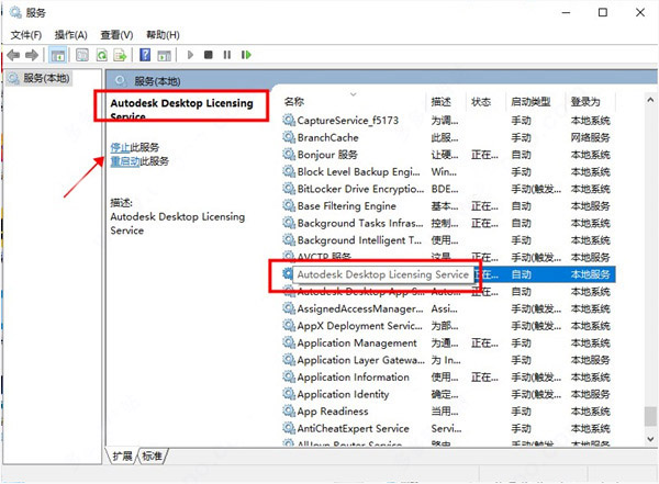 6、找到Autodesk Desktop Licensing Service服务点击停止;
